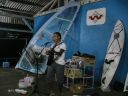 左から新人さん紹介(ウクレレ演奏にて)/香山君弾語り/抽選会優勝者(ツインウエーブ新品)