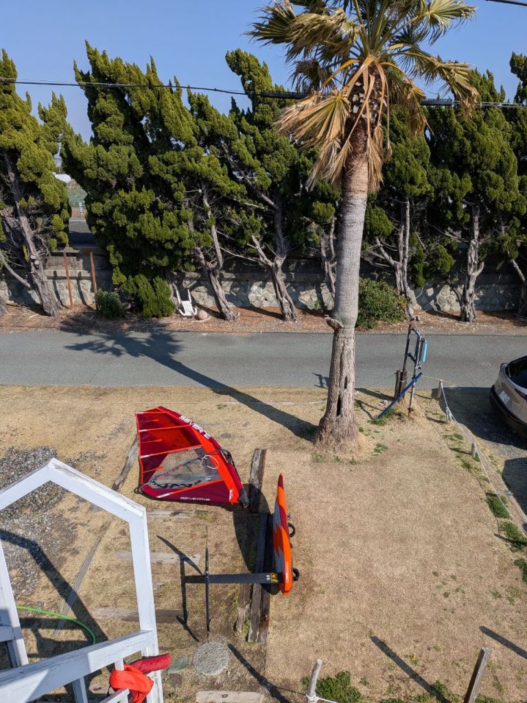 3,風向きの確認(東から北東風の完全オフショア時の出艇は避ける)